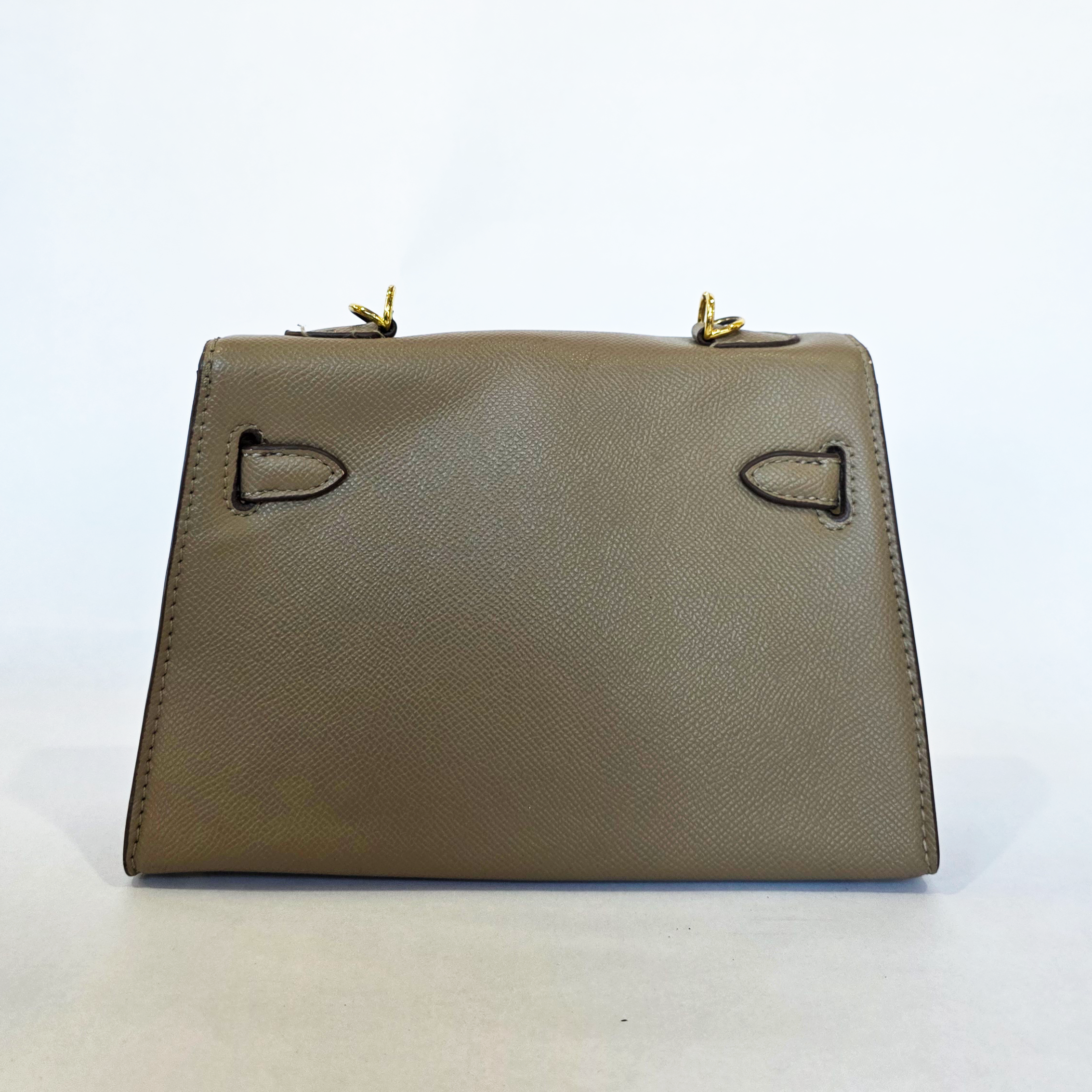 Channel timeless, high-end luxury with this sophisticated taupe structured bag. Featuring an elegant trapezoid silhouette and a classic strap-and-turn-lock front closure, this piece brings an instant touch of designer-inspired refinement to your wardrobe. Crafted with a highly durable, cross-hatch “saffiano” style texture, it naturally resists daily wear while keeping its crisp shape. Complete with top loops ready for you to attach your favorite handle or crossbody strap, it is a versatile, polished base for any outfit.